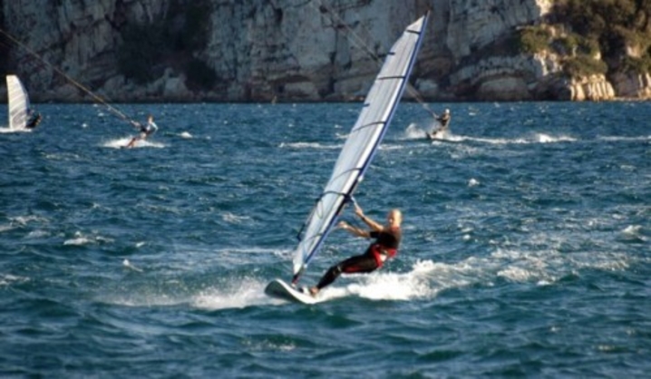 Les mordus de planche à voile pourront évoluer dans un cadre unique, entre la Croisette, les Îles de Lérins, et les montagnes en arrière-plan.